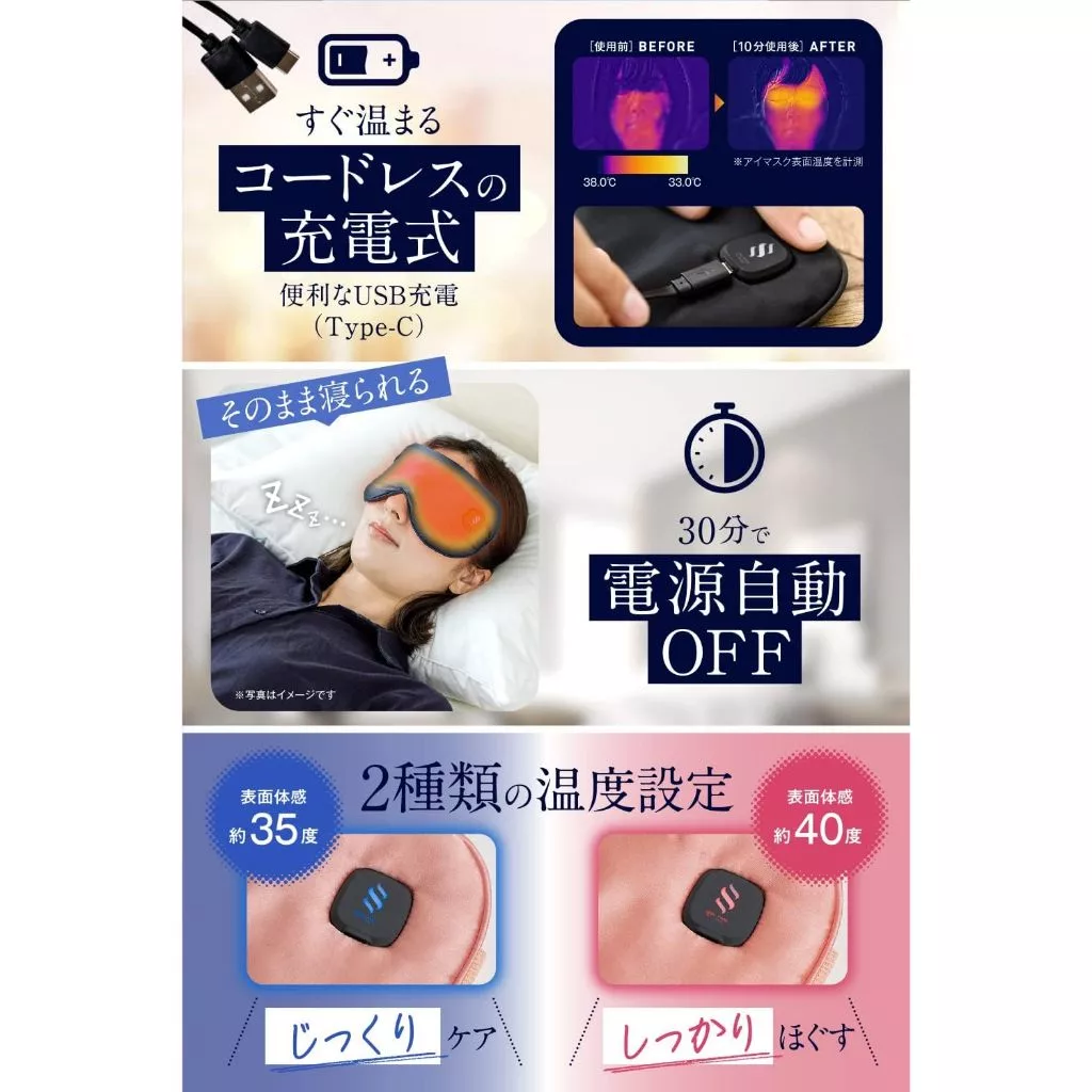 無需加熱即可直接作為眼罩使用,發揮高遮光性,有效 提升睡眠品質